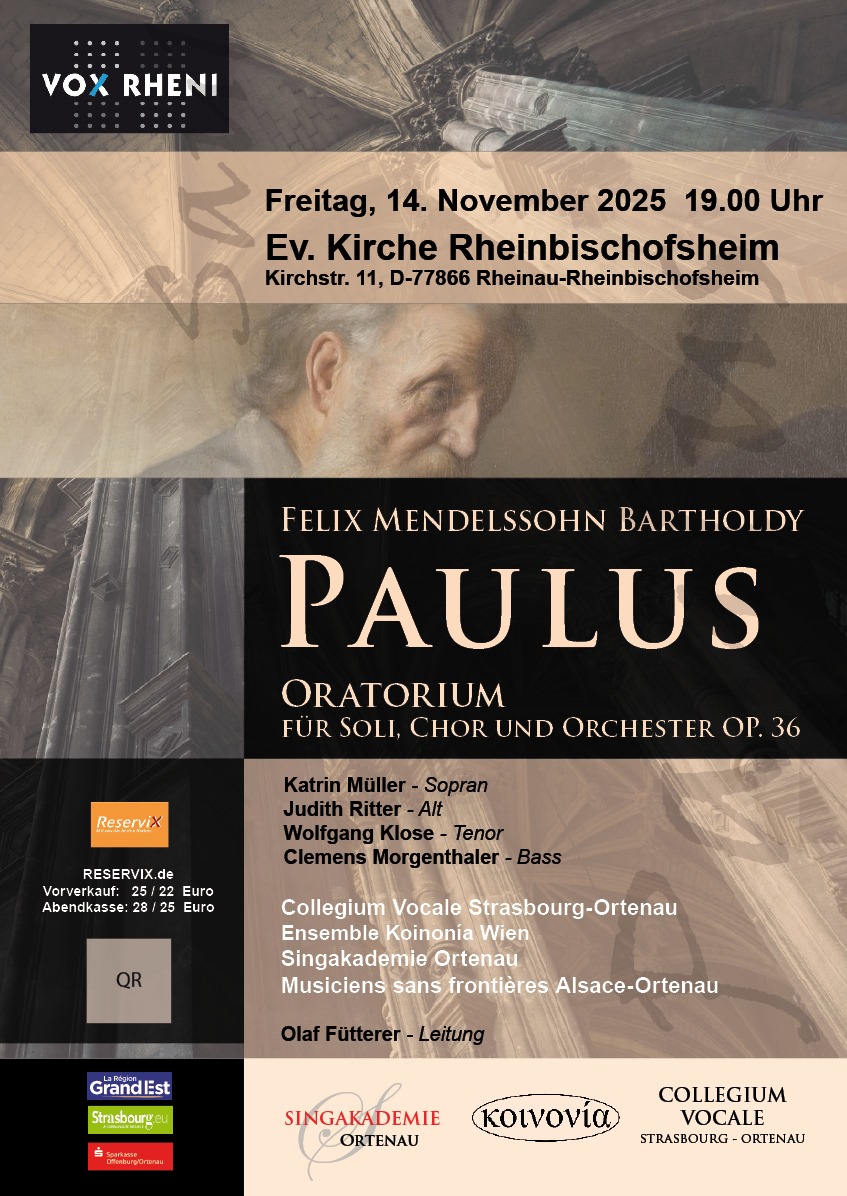 Novembre 2025: L’oratorio « Paulus » de Mendelssohn sera donné en trois concerts: